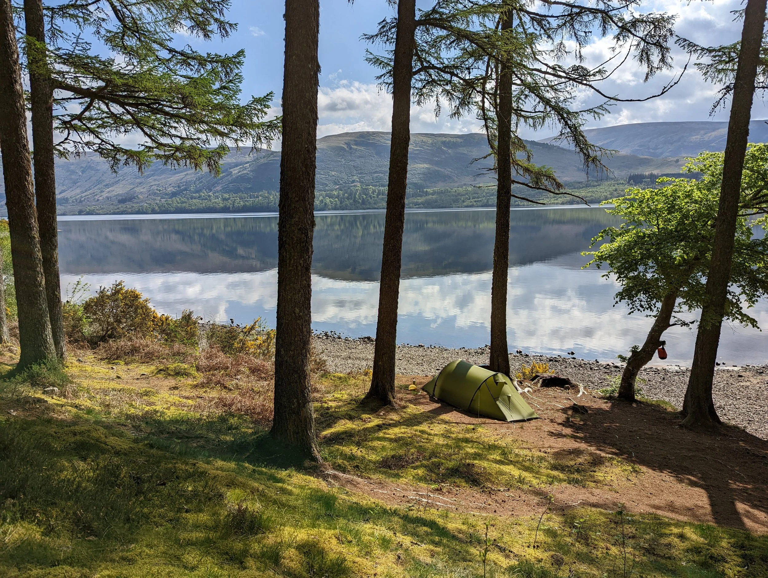Leiterfearn wild camping ground on the south shore of Loch Oich